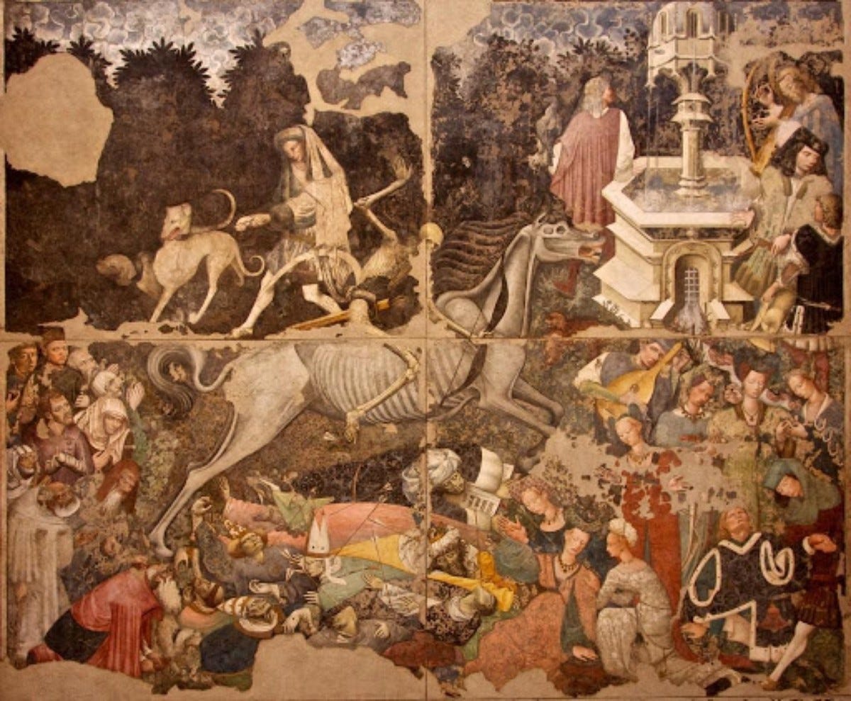 Ambroglio Lorenzetti, Triumph of Death, c. 1342. Currently held by the Pinacoteca Nazionale in Siena.