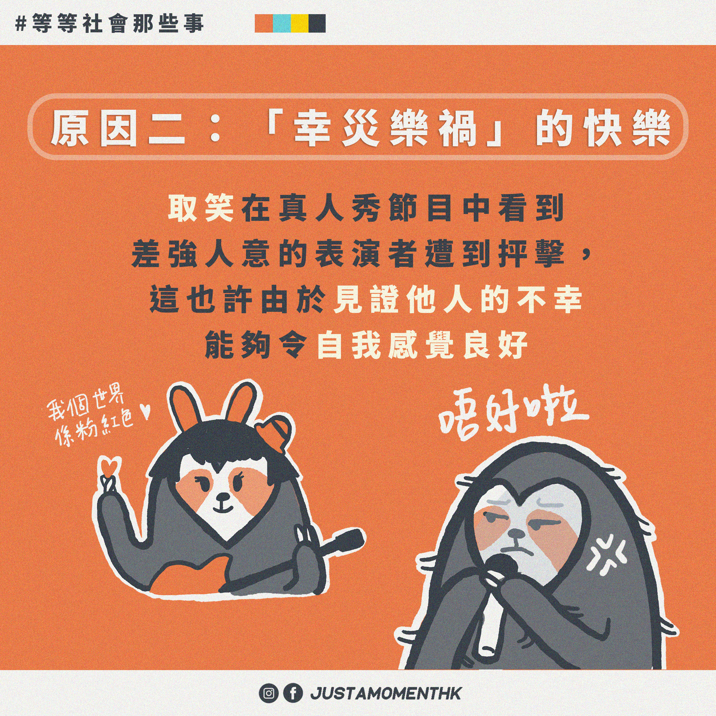 雖然我們自小學會不應取笑他人,但在真人秀節目中看到差強人意的表演者遭到抨擊,還是會忍不住笑,這也許由於見證他人的不幸能夠令自我感覺良好喔~