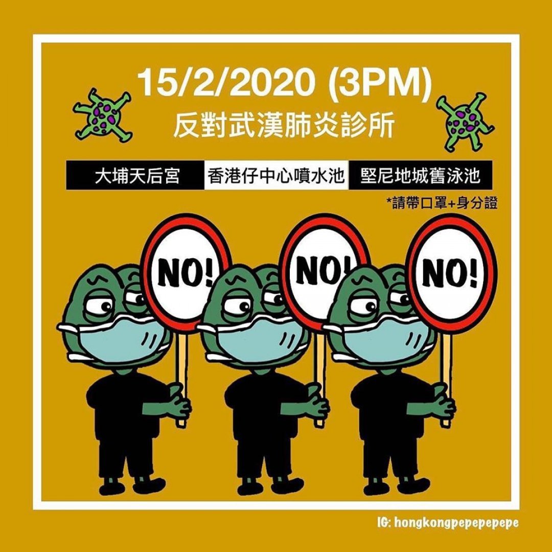 有鑒於政府漠視民意,強行係冇諮詢居民意見下於香港仔設立武漢肺炎指定診所,現呼籲各位2月15日星期六 下午3點 係香港仔噴水池集合,一齊嗌口號行過去賽馬會診所門外抗議。