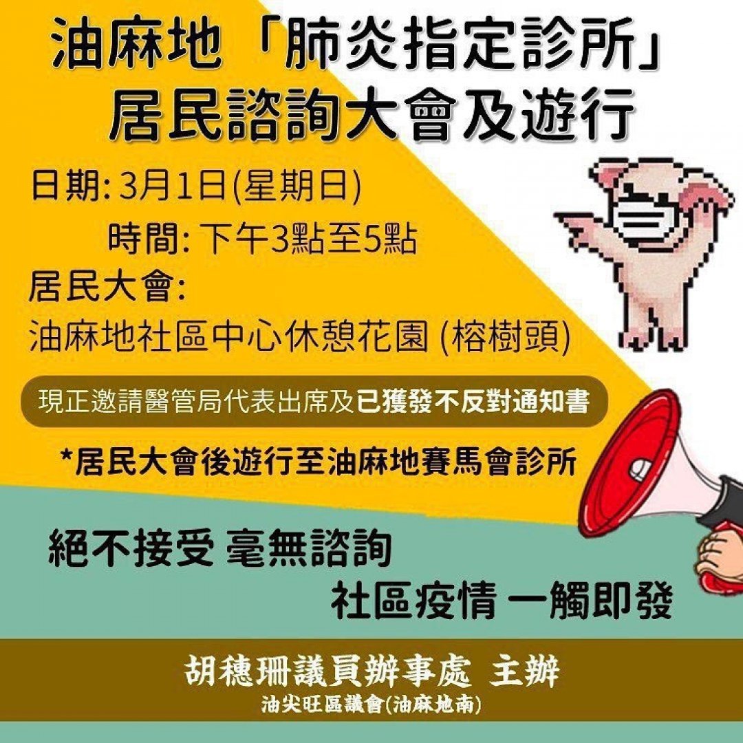 🏥油麻地「肺炎指定診所」居民諮詢大會及遊行🏥