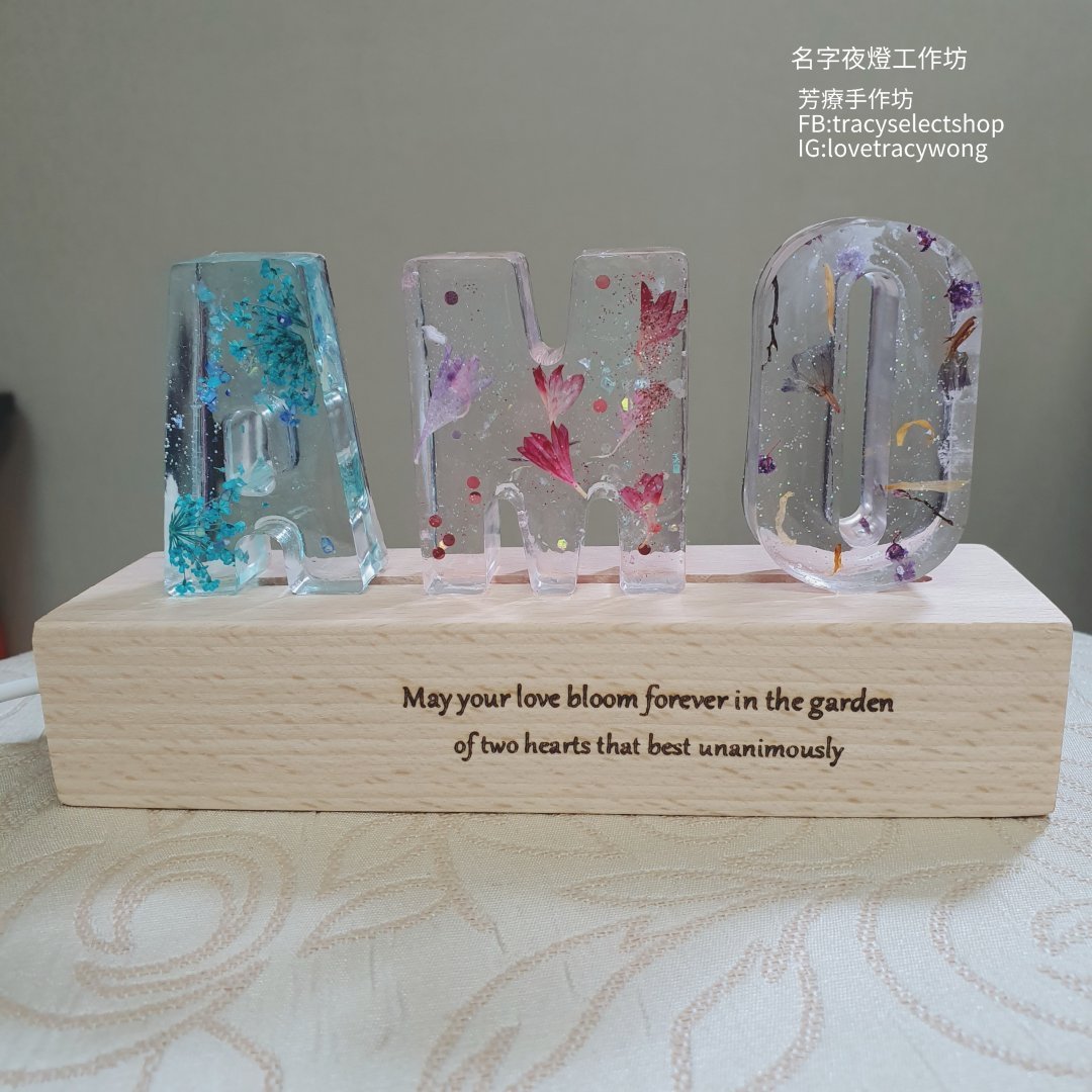 以不同素材拼成名字,增加個人化獨特性,配以木質USB夜燈,提高質感外還可以免費刻上字句/訊息!