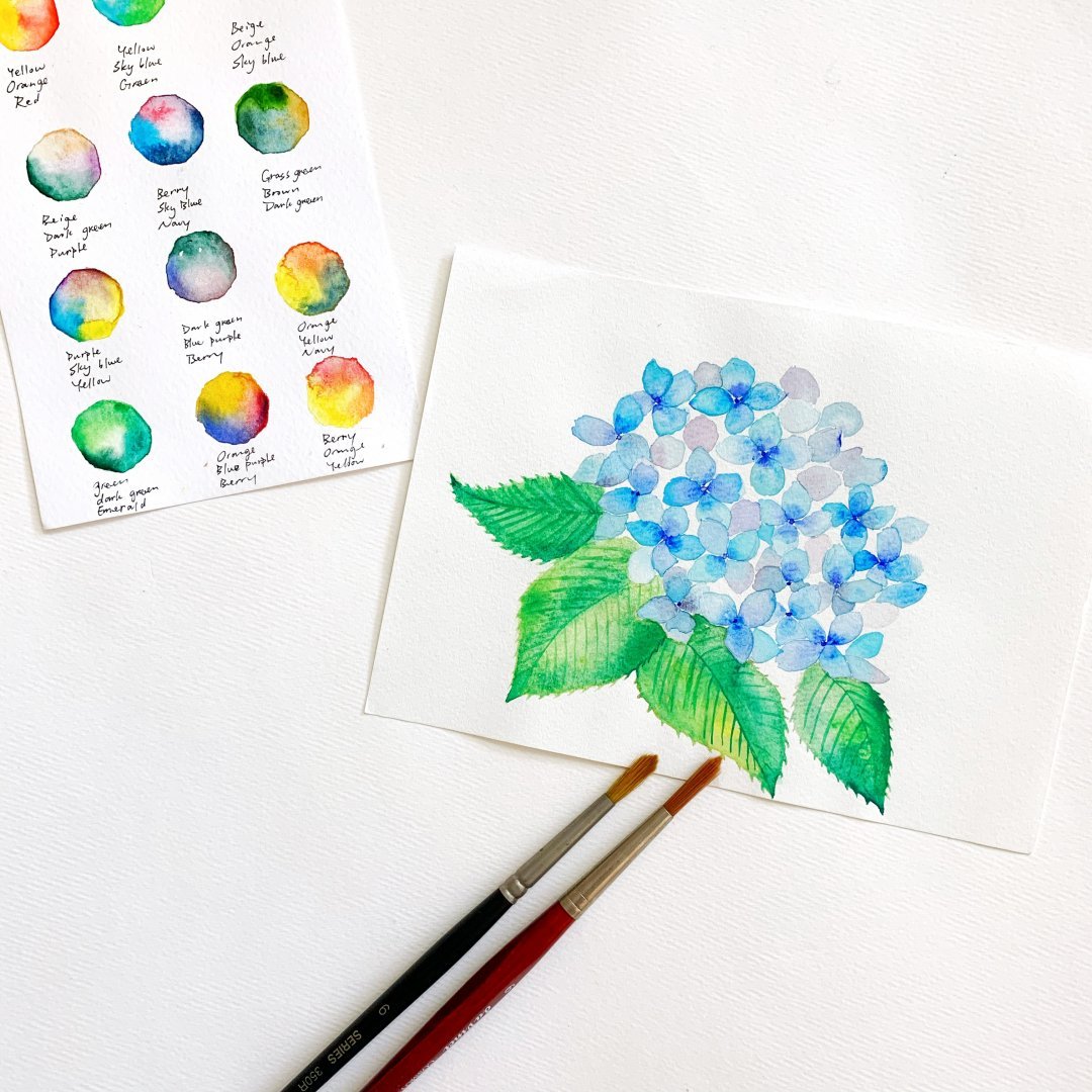 水彩繡球花工作坊由淺入深教授,課程適合初學者及對繪畫有興趣人士。 課程從簡單色彩配搭著手,並會教授繪畫繡球花及花葉技巧,課堂上大家會完成畫作帶走。