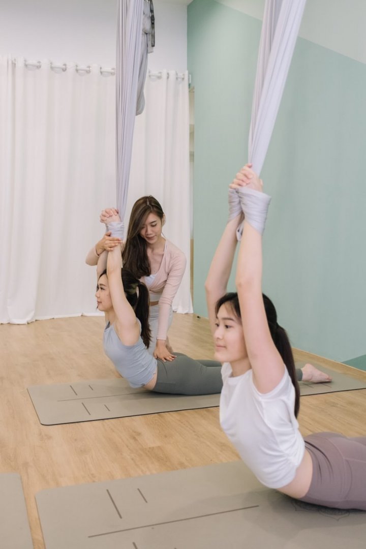 空中瑜伽利用地心吸力改善柔軟度,更可利用吊床嘗試於地面難以完成的動作如倒轉及後彎等。