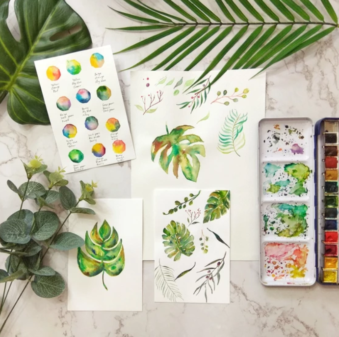 籌備已久的第二個水彩花繪課程正式上架,準備好走進植物花園學習水彩花繪創作了嗎?在這8堂網上預錄課程你會從基本工具及色彩理論著手,並會深入學習不同葉子與花卉富有層次的調色技巧。從繪畫不同的花葉形態,到用畫筆一一繪出龜背葉、橄欖葉、繡球花、棉花與罌粟花,完成一張張獨一無二的園藝畫作。