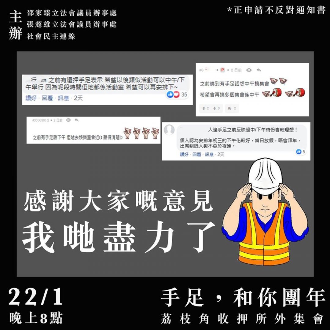 22/1 [ 手足,和你團年 ] 聲援在囚手足集會 (農曆年廿八)
