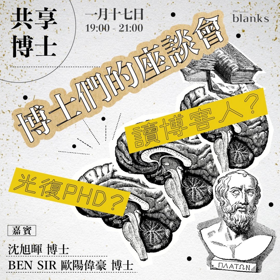 如果有朋友同樣誤墮讀博深淵成為博士,歡迎一月十七日來到GLOs Cafe by fooody 伙食工業,了解共享博士計劃光復PHD之餘,一同訴博士之苦。