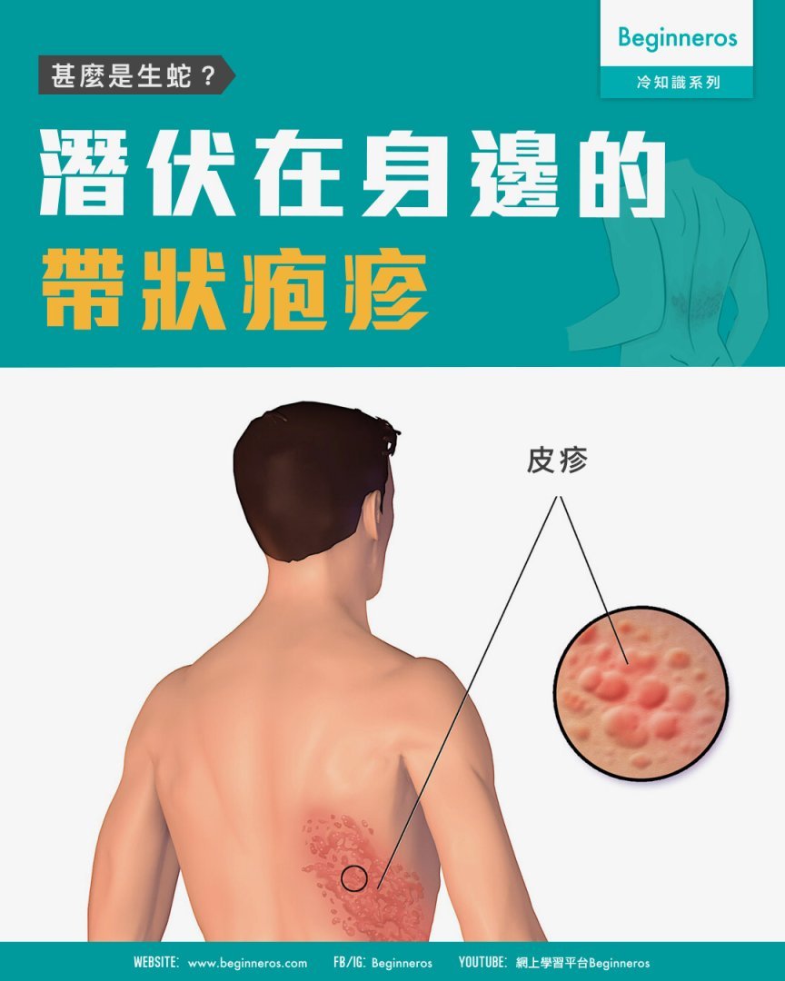 只要你曾於兒時患過水痘,日後就有可能出現「生蛇」的情況。
