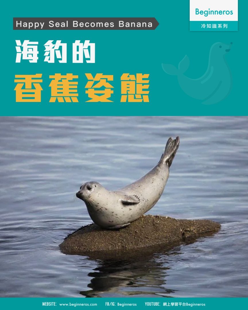 這個被暱稱為「香蕉姿勢」的行為,多半出現在海豹覺得安全、放鬆的時候,也是牠們休息又保暖的一套自然招式。