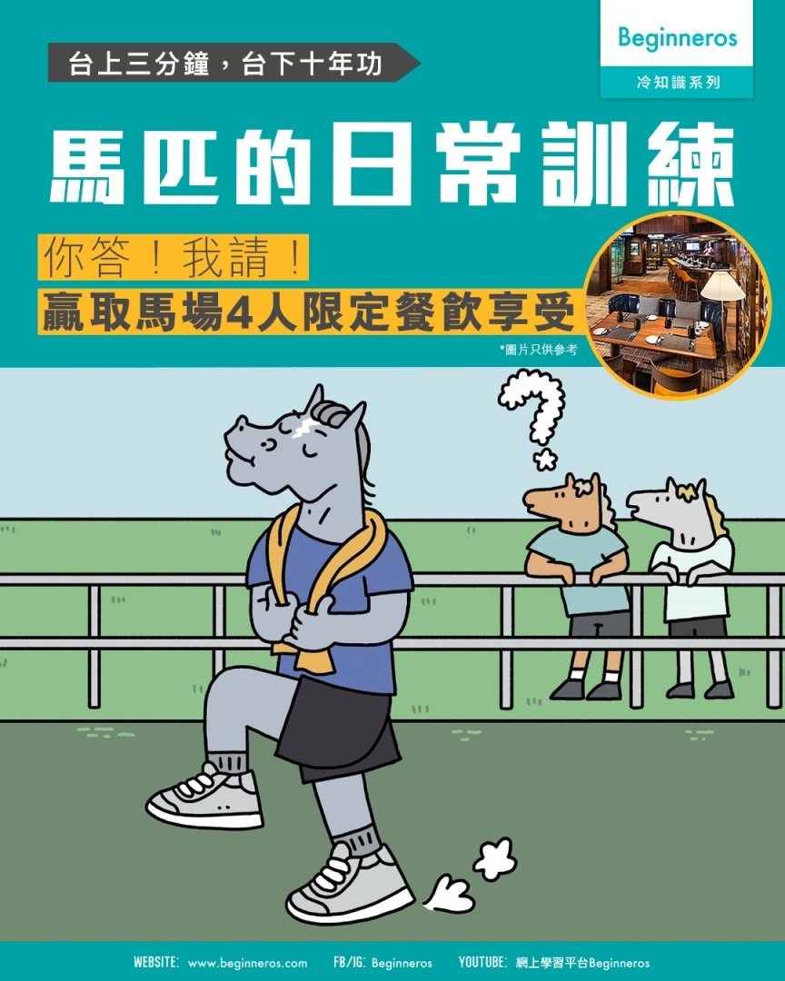 答啱問題,就有機會同三位經常一齊訓練嘅兄弟喺跑馬地馬場Keiba餐廳食四道菜日式洋食晚餐,唔好錯過啦!