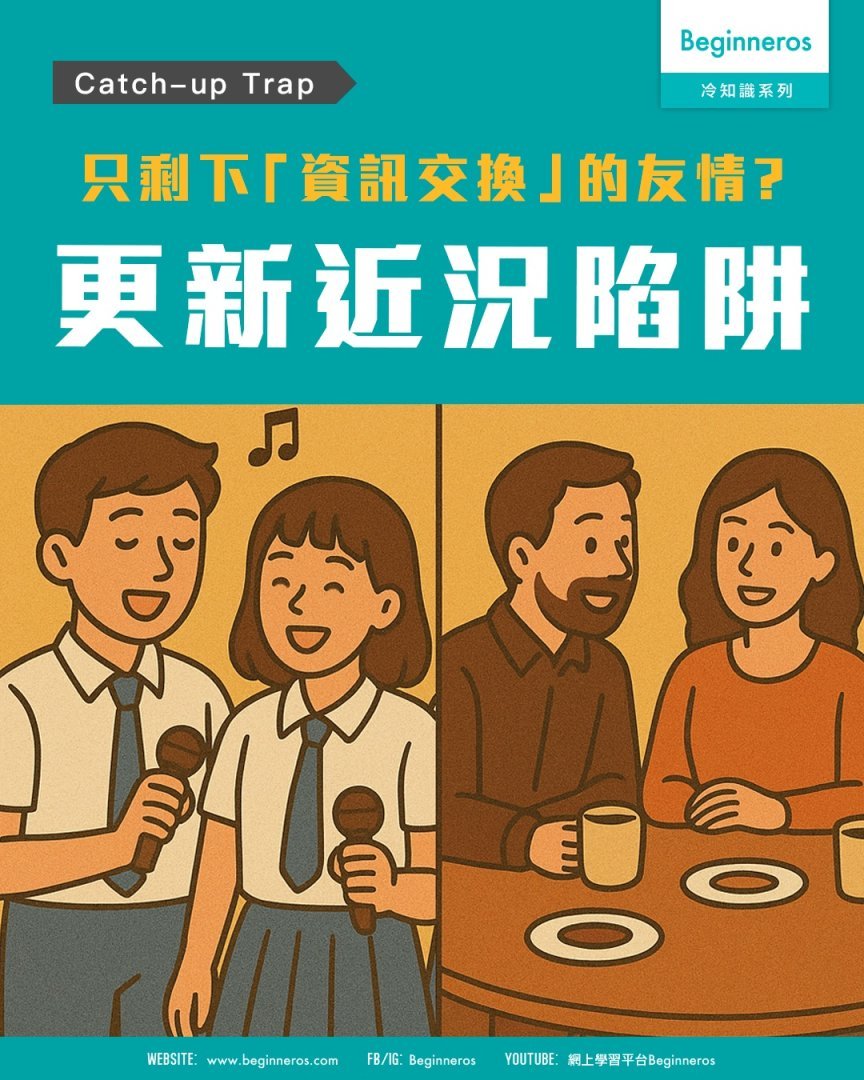 Catch-up Trap 指的是:成年人的友情,常常只剩下「互相更新生活進度」,卻少了「一起生活」的時間。