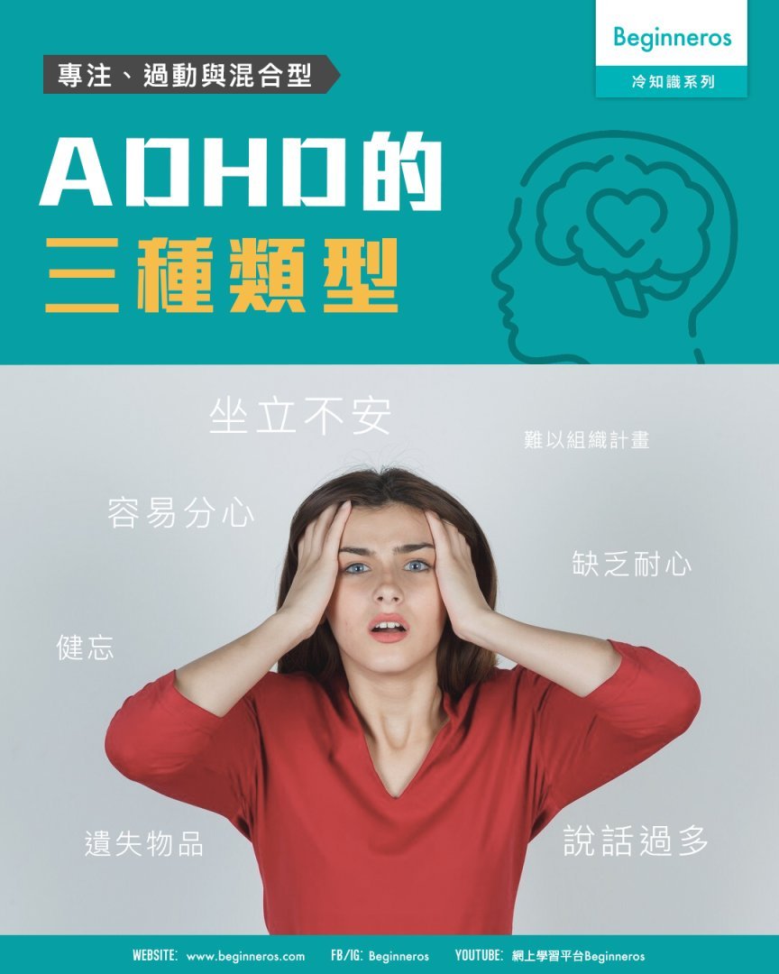 ADHD,全名「專注力失調及過度活躍症(Attention Deficit Hyperactivity Disorder)」,是一種神經發展障礙,主要分為三種類型: