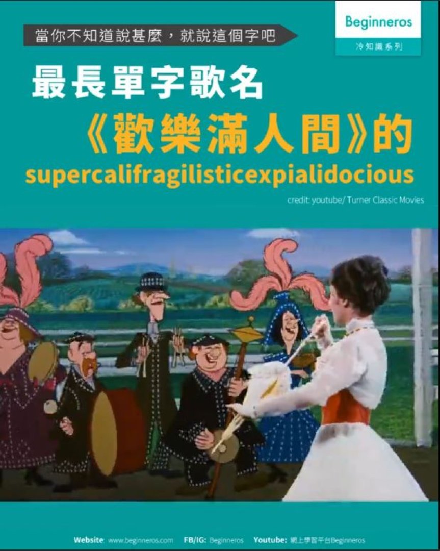 你知道英文中最長、最容易令人「舌頭打結」的單字是甚麼嗎?那就是來自《Mary Poppins(歡樂滿人間)》的經典神曲:supercalifragilisticexpialidocious。