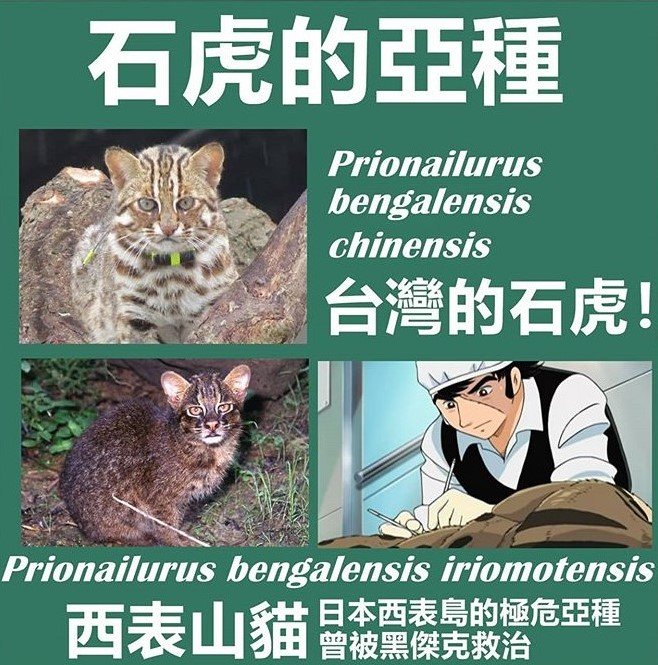 而🇹🇼台灣的石虎(Prionailurus bengalensis chinensis),是台灣唯一的原生貓科類。台灣原本居住著兩種原生貓科類,也就是雲豹和石虎。