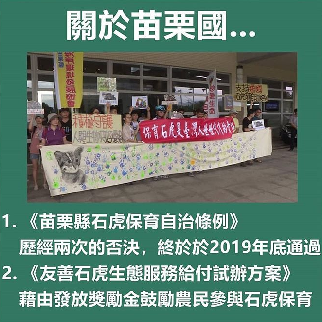 c.苗栗縣議會於2019年12月10日通過《苗栗縣石虎保育自治條例》