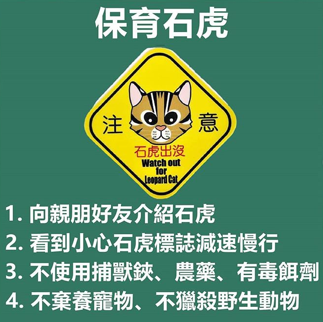 7. 發現受傷或迷失在人為環境中的石虎,儘速請相關單位協助