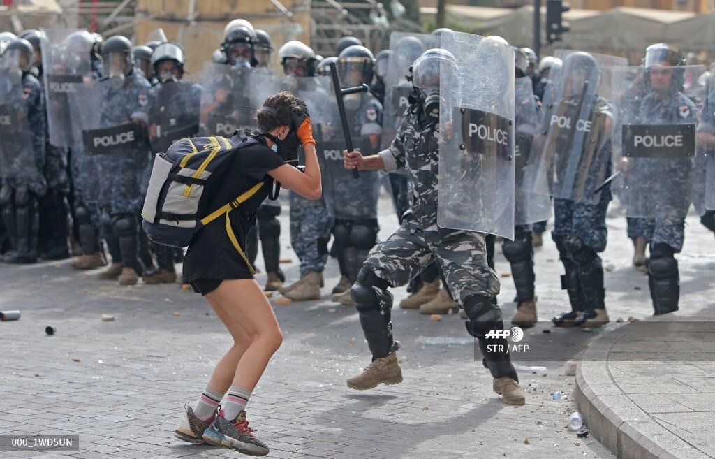 黎巴嫩抗爭者 vs. 黎巴嫩警察 // 市內衝突畫面見 AFP Twitter : https://bit.ly/2QTjg2W(Photo source : AFP)