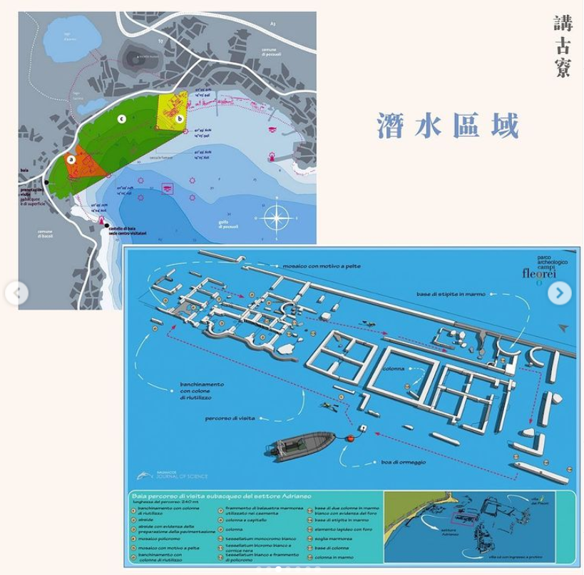 參考資料📚:Capozzi, R., Picone, A. and VISCONTI, F., 2016. ARCHAEOLOGY, ARCHITECTURE AND CITY: The Enhancement Project of the Archaeological Park of the Baths of Baiae. International Journal of Architectural Research: ArchNet-IJAR, 10(1), p.113. / Parco Archeologico Sommerso Di Baia/ Centro Sub Campi Flegrei/ Pozzuoli Bay Dive Guide/ BBC Travel