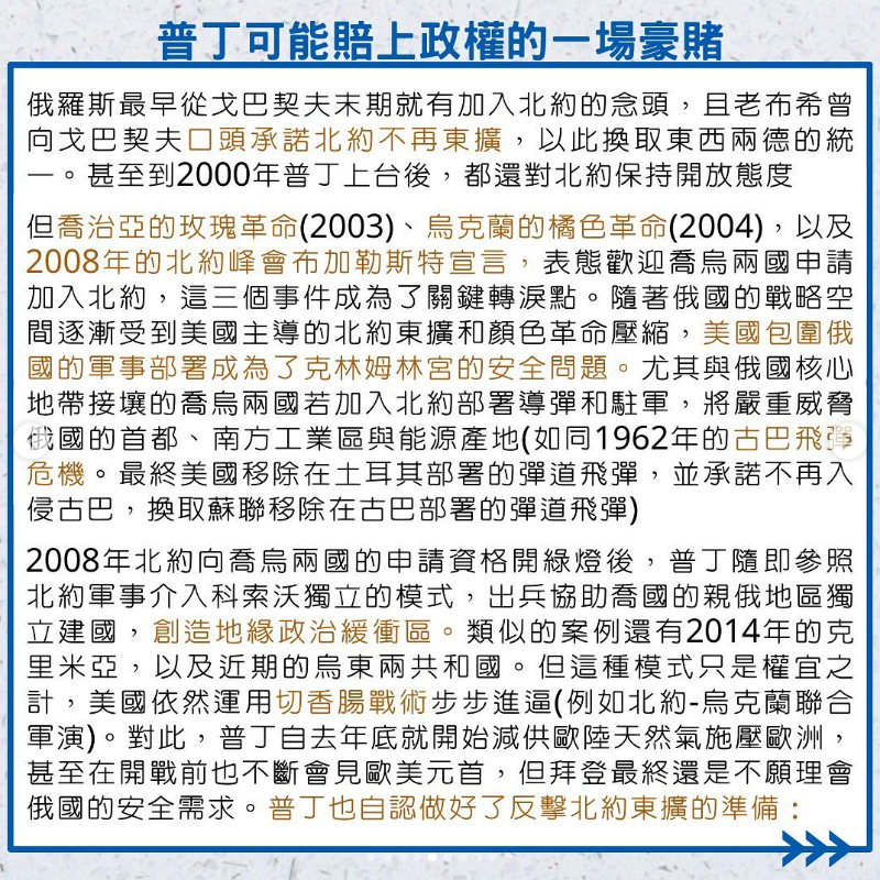 文末,季辛吉的最後一段話,彷彿早已預言這場俄烏衝突將迎來終局之戰:「如果無法實現上述提供的解決方案或類似的選項,事態將會加速駛向衝突,時間很快就會到來。」